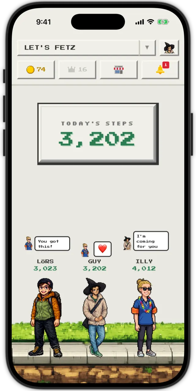 A step counter that makes walking fun. Add your friends and compete to see who walks the most.